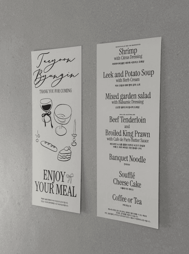 순서와 식사가 하나의 흐름으로 이어지도록 균형 있게 구성합니다.